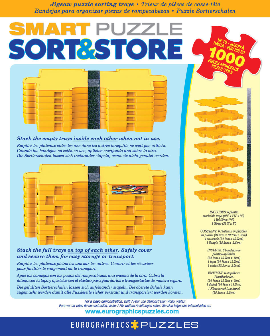 Eurographics Smart Puzzle Sort and Store. Łatwy sposób na sortowanie i przechowywanie puzzli, gdy przygotowujesz się do układania następnej układanki. Łatwe w użyciu, wytrzymałe przegródki.