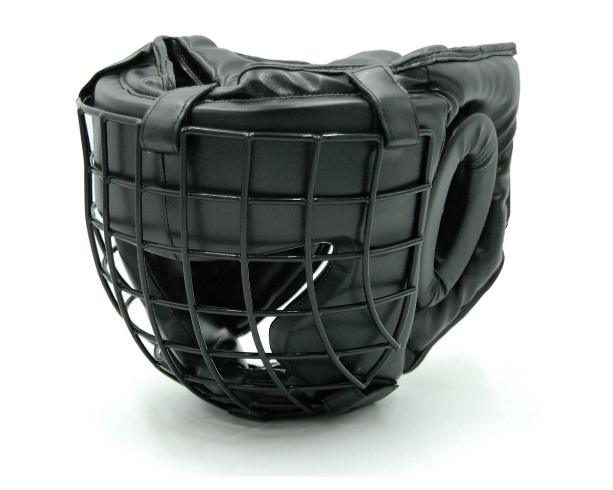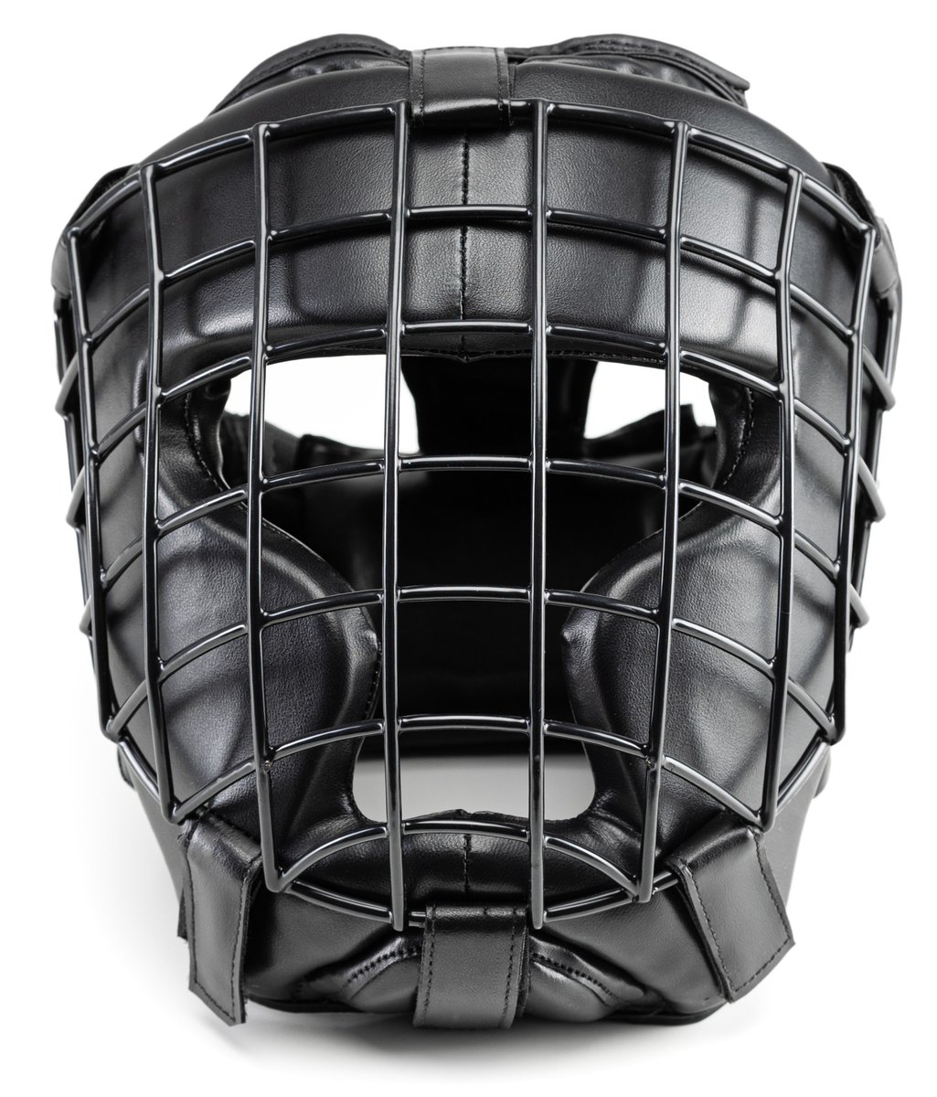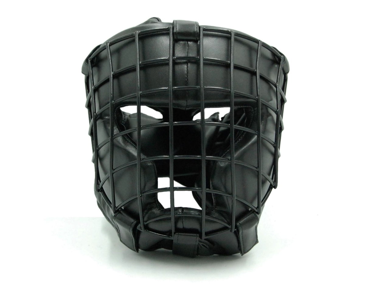 Kask z kratą (maską) metalową wykonany z wysokiej jakości skóry syntetycznej, wypełniony wysokiej gęstości pianką, która doskonale tłumi ciosy.