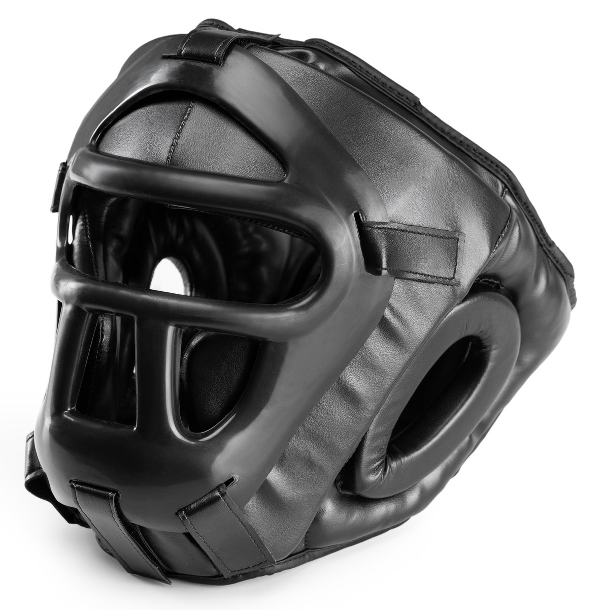 Kask treningowy z maską idealnie sprawdzi się podczas treningu sportów walki i boksu. Zaprojektowany w taki sposób aby chronić: głowę, uszy, kości szczęki, kości policzkowe oraz nos. Plastikowa krata mocowana jest do kasku za pomocą rzepów.