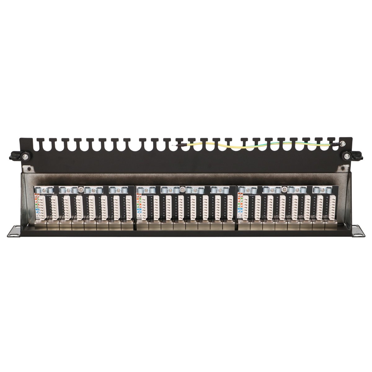 24-portowy ekranowany patchpanel służy do prowadzenia kabli różnych podsystemów SCS oraz łączenia poszczególnych komponentów sieciowych ze sobą za pomocą kabli krosowych. Kable abonenckie łączone są metodą styku przelotowego IDC typu LSA. Standardowe gniazda RJ-45 montowane są na froncie panelu, w grupach po 8 portów. Montaż panelu odbywa się za pomocą standardowego narzędzia przeznaczonego do złącz typu LSA Block.