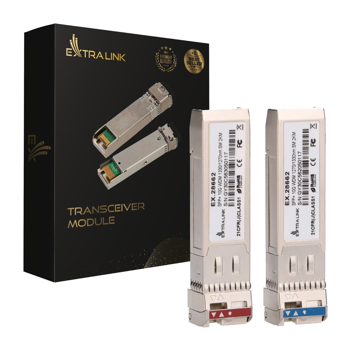 | Nazwa: | Extralink SFP+ 10G | Moduł SFP+ WDM | 10Gbps 1270/1330nm, single mode, 2km, para |