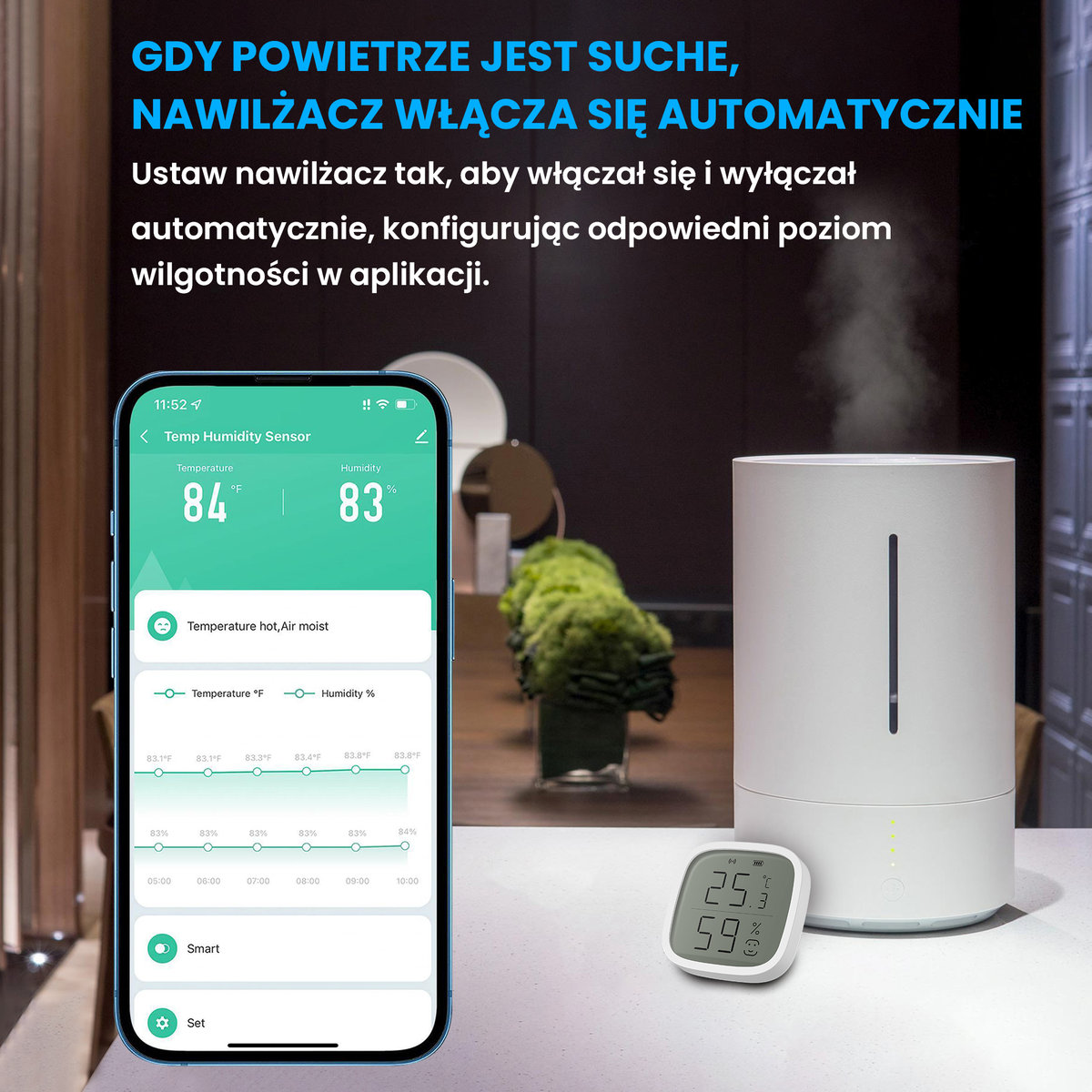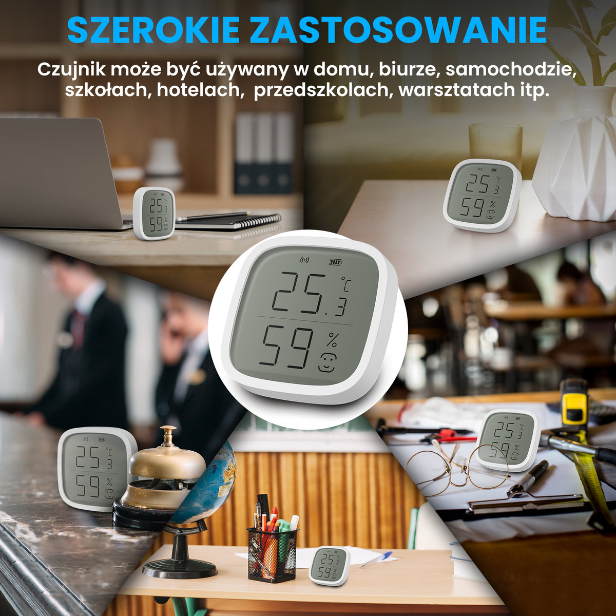 Czujnik Extralink wykrywa wartości temperatury i wilgotności otoczenia oraz wyświetla wartości temperatury i wilgotności na czytelnym ekranie LCD. Czujnik wysyła sygnał do bramki wielofunkcyjnej Extralink Smart Gateway, która może uruchomić inne urządzenia inteligentne.