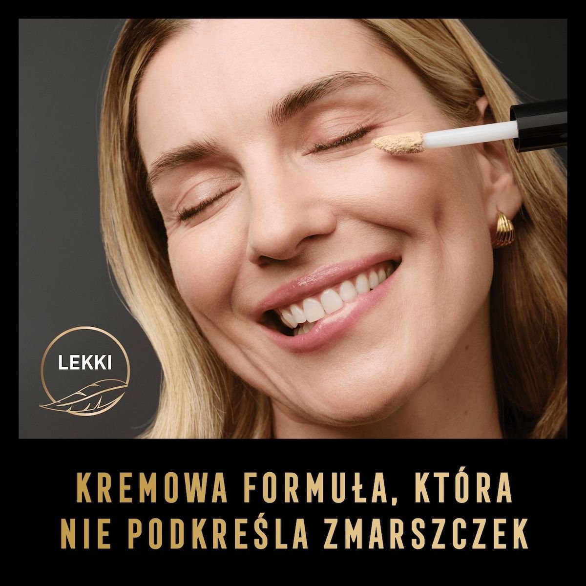 To wielofunkcyjny korektor w płynie, który natychmiastowo rozświetla skórę, maskuje niedoskonałości, cienie pod oczami oraz wygładza drobne zmarszczki, zapewniając perfekcyjne wykończenie. Ten lekki, wegański korektor to prawdziwy skarb – jego kremowa formuła z pigmentami odbijającymi światło doskonale się rozprowadza, nie osiadając w liniach wokół oczu, jednocześnie nawilżając skórę. Zapewnia trwałe, odporne na rozmazywanie krycie, którego intensywność możesz dostosować do swoich potrzeb. Duży aplikator typu jumbo jest wyjątkowo delikatny dla skóry. Umożliwia szybką i łatwą aplikację dla osiągnięcia różnorodnych efektów.