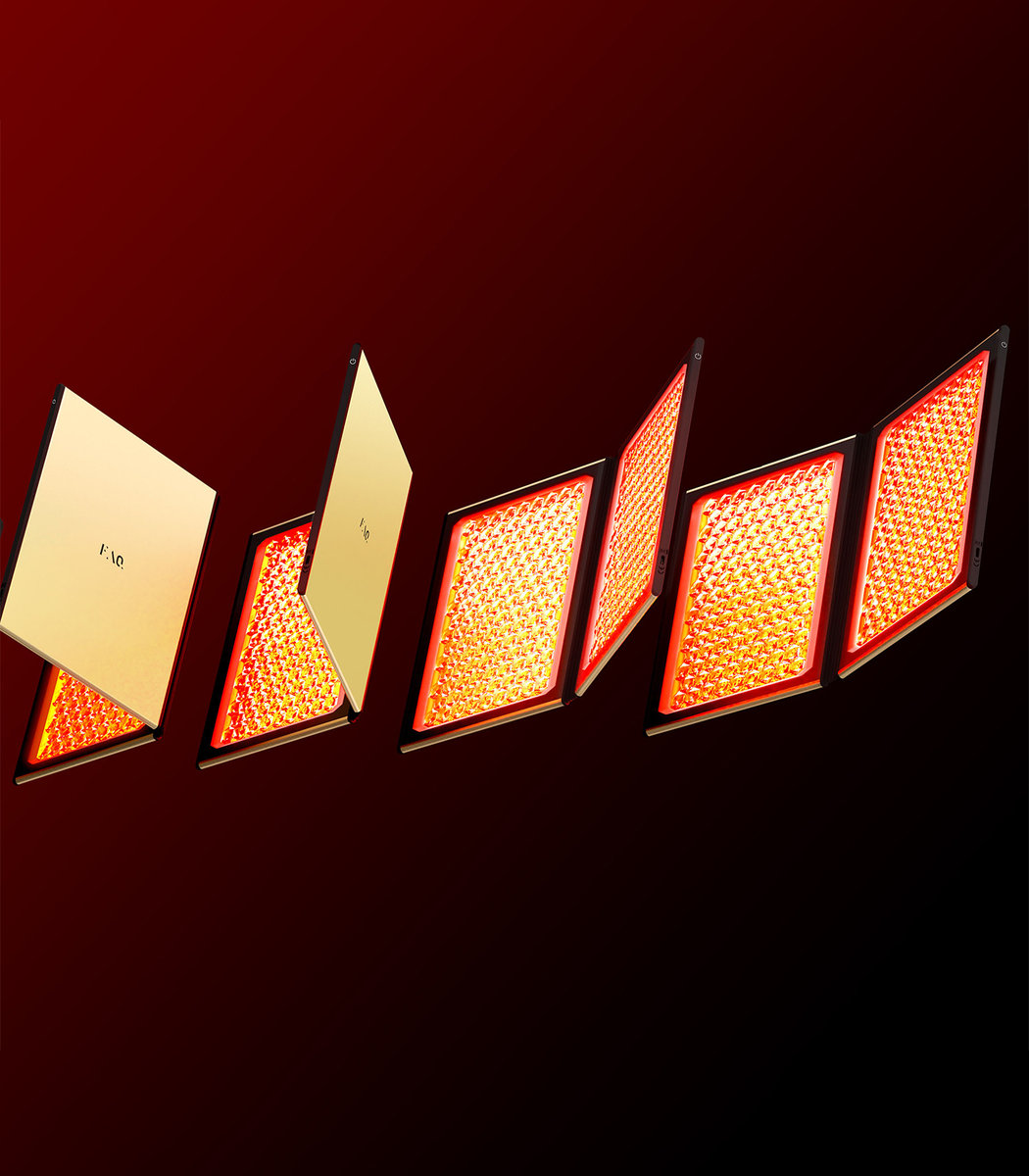 Każdy panel wyposażony jest w rewolucyjne, opatentowane soczewki w kształcie diamentu, wzmacniające moc 256 diod LED o wysokiej intensywności z każdej strony, dla głębszej i bardziej kompleksowej aplikacji. Światło czerwone i bliskiej podczerwieni działa synergicznie, aby wspierać witalność skóry, światło niebieskie sprzyja czystości, a bursztynowe łagodzi zaczerwienienia.
