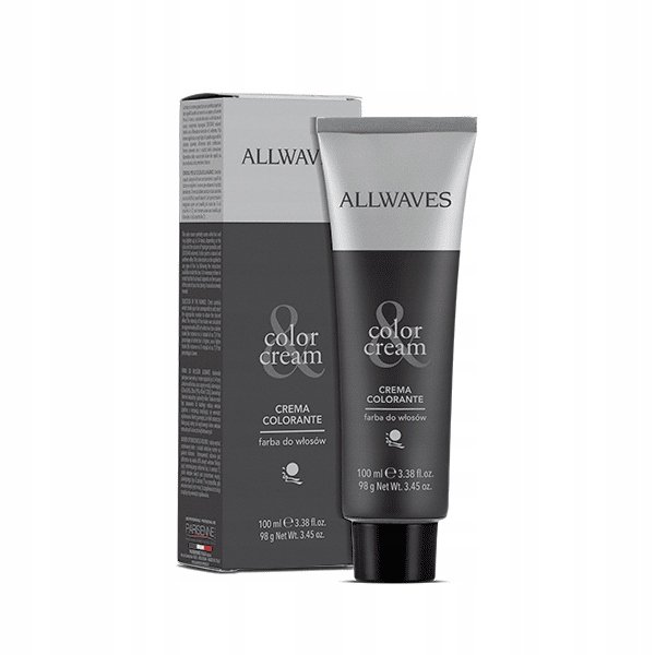 Farba do włosów Allwaves gwarantuje naturalne i jednolite pokrycie kolorem,doskonalne kryje siwe włosy.Farba nadaje się do każdego rodzaju włosów. Dedykowany oxydant Allwaves. Pojemność produktu 100.ml