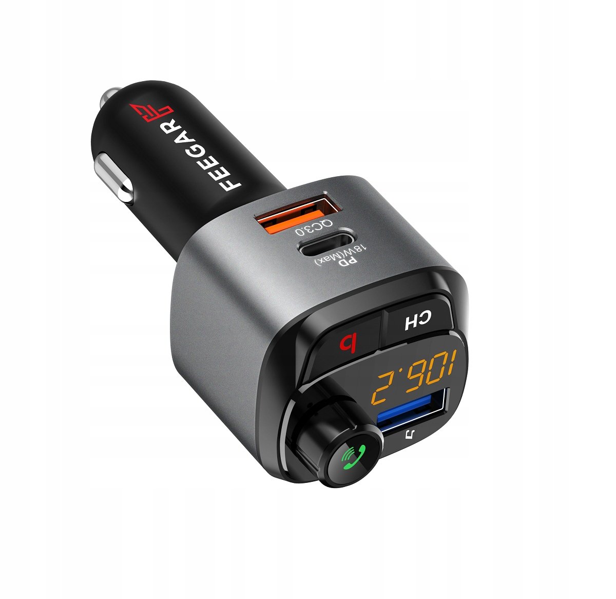 Transmiter FM FEEGAR Q100 Pro, BluetoothTransmiter FM to niewielkie urządzenie, które pozwala na odtwarzanie muzyki z telefonu lub innego urządzenia na głośnikach samochodowych bez potrzeby ...