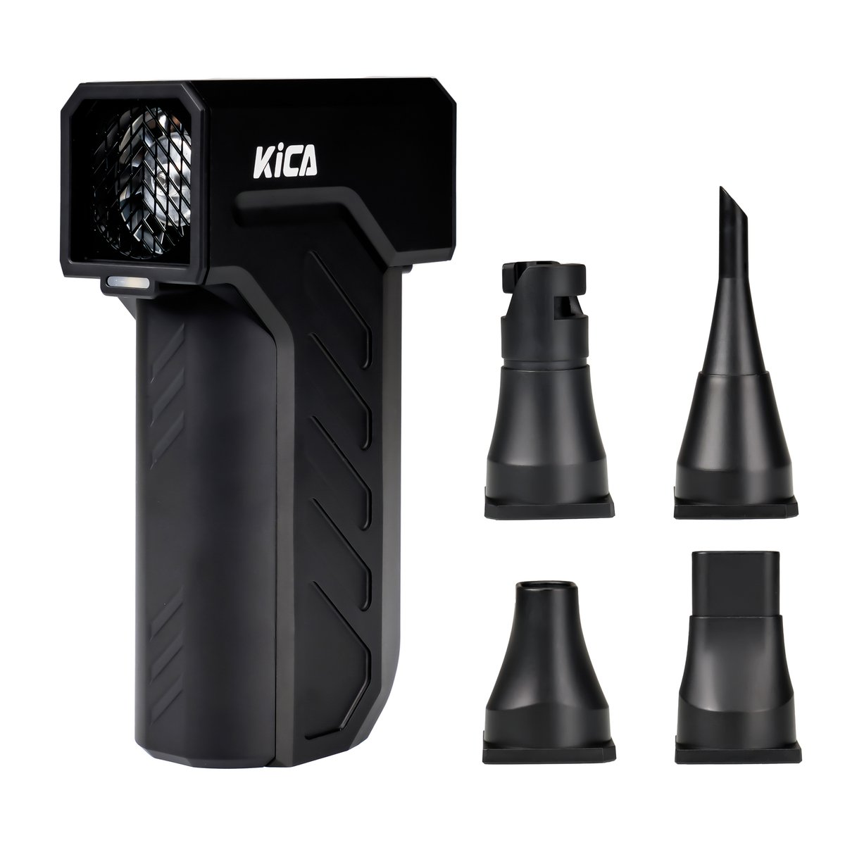 Dmuchawa KiCA Jetfan Ultra jest wyposażona w 4 magnetyczne końcówki, które pozwalają dostosować urządzenie do różnych zadań. W zestawie znajdziesz:
