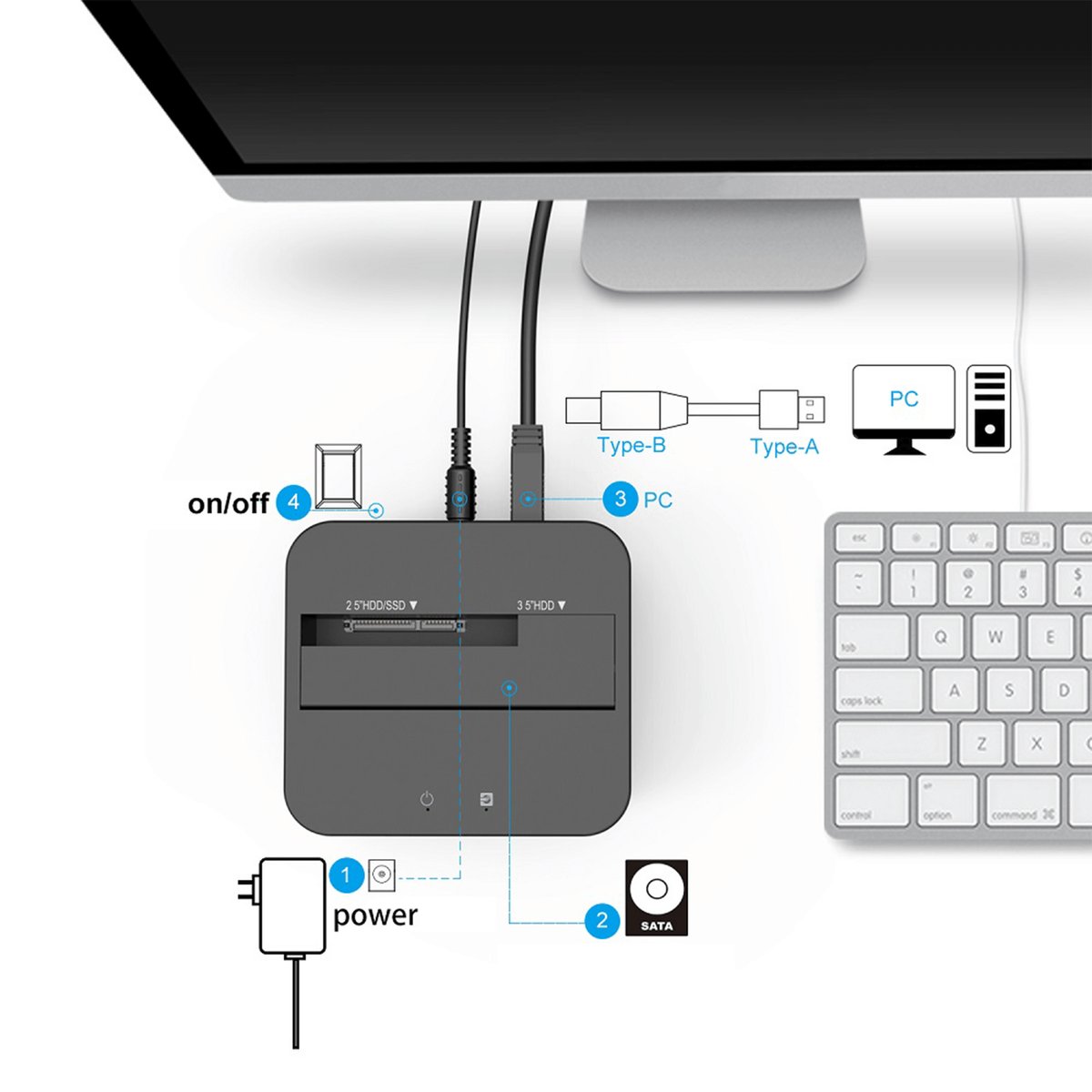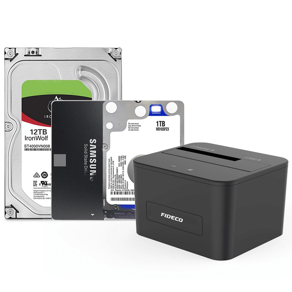 Stacja dokująca Fideco YPZ04S1 oferuje łatwy dostęp do dysków HDD oraz SSD SATA I/II/III o wielkości 2,5” oraz 3,5”. Obsługuje dyski twarde o pojemności do 16 TB. Jest doskonałym rozwiązaniem do tworzenia kopii zapasowych i przetwarzania danych IT, danych przetwarzania wsadowego, formatowania, przesyłania plików czy odzyskiwania danych.