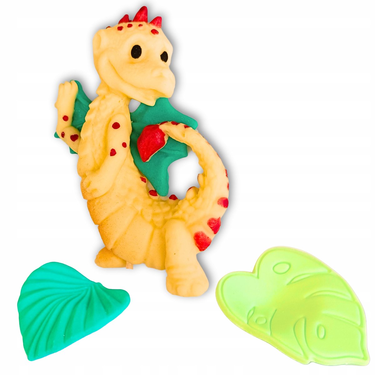 Figurka cukrowa na tort topper dinozaur ozdoby dekoracje urodzinowe liść 2D 3szt