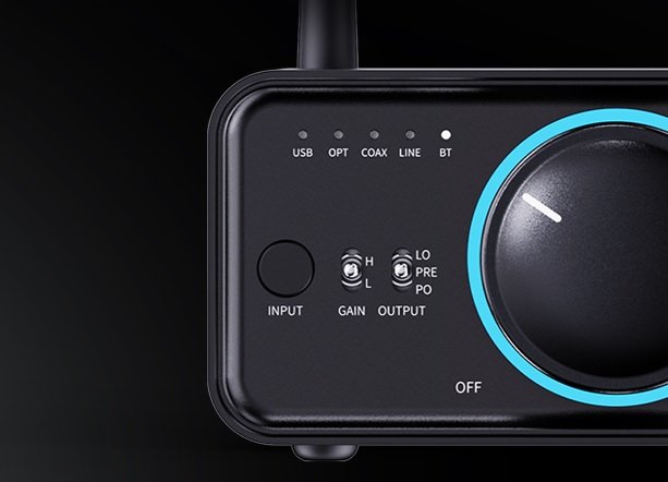 Wysokie i niskie poziomy wzmocnienia sprzętowego pozwalają łatwo dostosować K7 BT do obsługi słuchawek o różnej impedancji i czułości, zapewniając bogate i spójne wrażenia odsłuchowe.