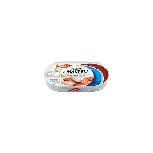 Filety z makreli w sosie pom. z susz. pom .170g Filety z makreli w sosie pom. z susz. pom .170gGraal Filety z makreli w sosie pomidorowym z suszonymi pomidorami 170 gProdukt nowy, oryginalny i ...