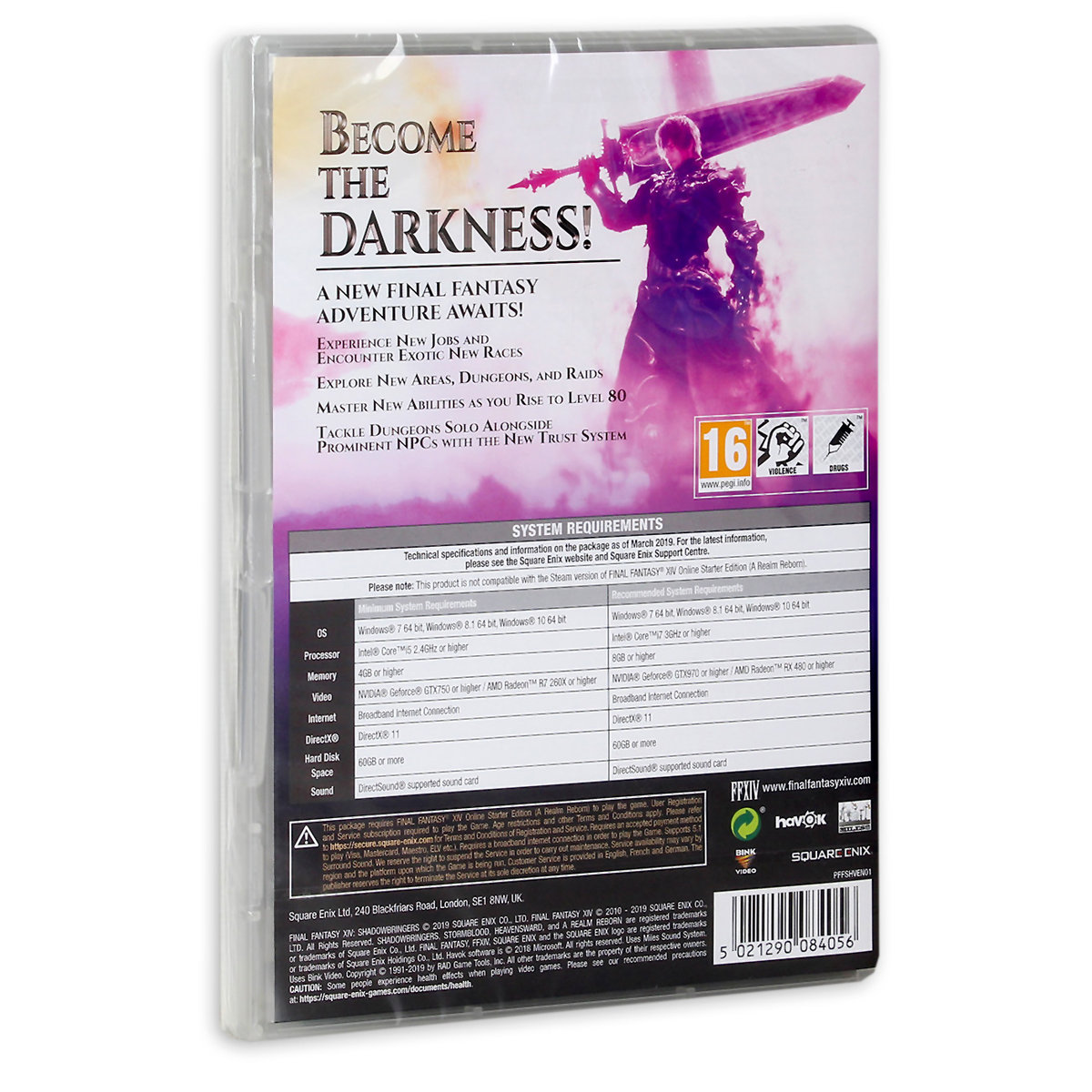 Weź udział w kolejnej części sagi wysoko ocenianej gry MMO – FINAL FANTASY® XIV Online dzięki nowemu, epickiemu rozszerzeniu fabularnemu – SHADOWBRINGERS! Odkryj zapierające dech w piersiach, nieznane dotąd lokacje; spotkaj przedstawicieli nowych ras, opanuj do perfekcji nowe profesje i walcz ramię w ramię z wybitnymi postaciami dzięki nowemu systemowi Trust, kiedy wyruszysz w nową podróż jako Wojownik Ciemności!