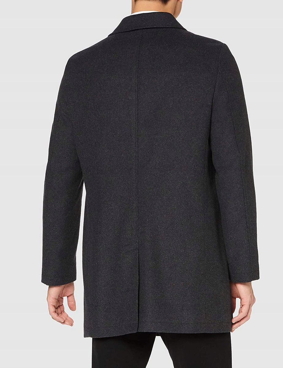 Ciemnoszary płaszcz męski marki FIND, wykonany z wysokiej jakości materiałów. Zapewnia wygodę i komfort podczas noszenia. Doskonale sprawdzi się w jesiennych i wiosennych stylizacjach. Posiada dwie kieszenie boczne wykończone lamówką i jedną kieszeń wewnętrzną. Płaszcz zapinany jest na guziki. Idealna propozycja na imprezy okolicznościowe. Płaszcz marki FIND stworzy modną stylizację z dopasowanymi spodniami, golfem oraz eleganckimi butami.