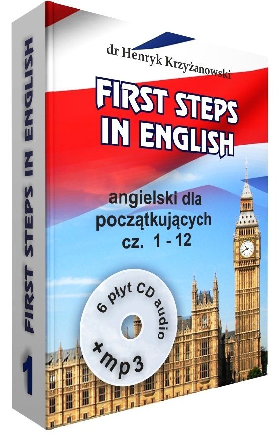 Intensywny kurs języka angielskiego "First Steps in English" jest kursem opartym na oryginalnej, sprawdzonej w praktyce i wysoce skutecznej metodzie nauczania języka obcego. Zestaw obejmuje 480 minut nagrań (6 płyt CD audio + płyta w formacie mp3). Nagrania oraz podręcznik zapewniają łącznie 200 intensywnych lekcji języka angielskiego. Kurs jest przeznaczony dla osób początkujących, a także dla tych, którzy chcą uporządkować i usystematyzować posiadaną wiedzę.