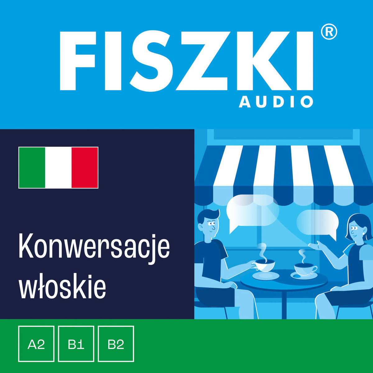 "FISZKI audio – włoski - Konwersacje” polecamy osobom, które – mimo że uczą się języka włoskiego już od jakiegoś czasu – wciąż nie przełamały bariery w mówieniu , zarówno podczas rozmów towarzyskich, jak i spotkań biznesowych (poziom A2/B2).