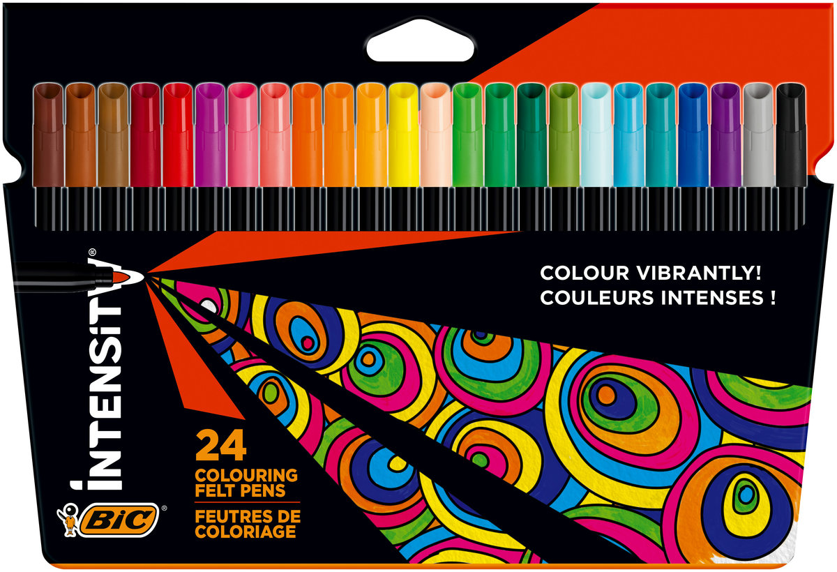 BIC, Flamastry, Intensity Up, 24szt. flamastry z cienką końcówką i tuszem na bazie wody pozostawiony bez skuwki,nie wysycha do 3 miesięcy (z wyjątkiem czarnego tuszu) idealny do szkoły i ...