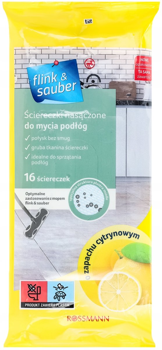 Właśnie zrecenzowałem FLINK&SAUBER Ściereczki mokre do mycia podłóg o zapachu CYTRYNOWYM 16 szt.