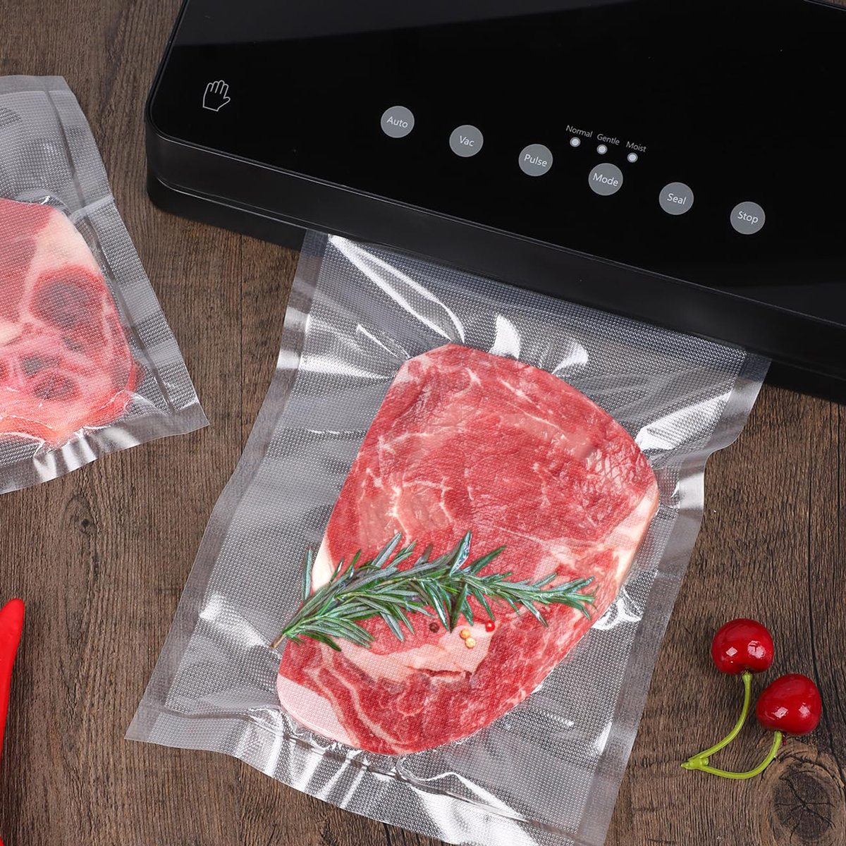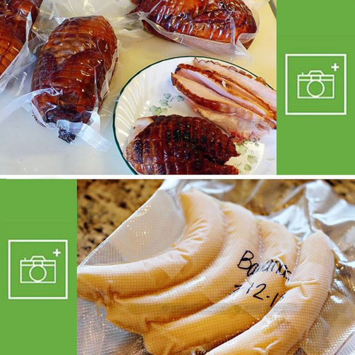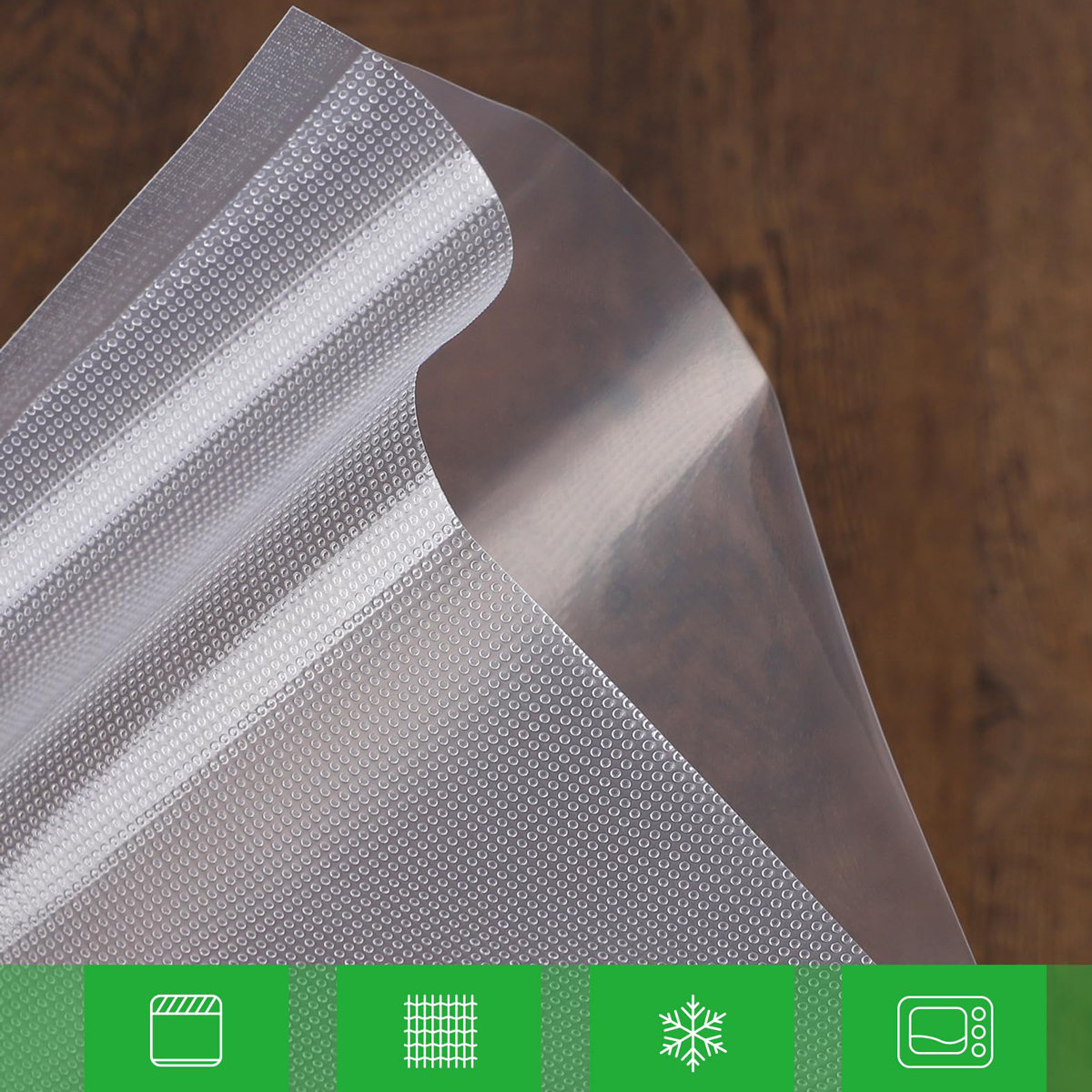 Jedna strona z moletowanym kanałem i przezroczysta z drugiej, zapewnia mocne ssanie i zgrzewanie, chroni żywność przed przebiciem worka próżniowego.