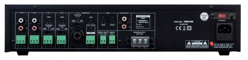 Fonestar PROX-120S - Uniwersalny wzmacniacz 100 V / niskoimpedancyjny o mocy 120 W RMS.
