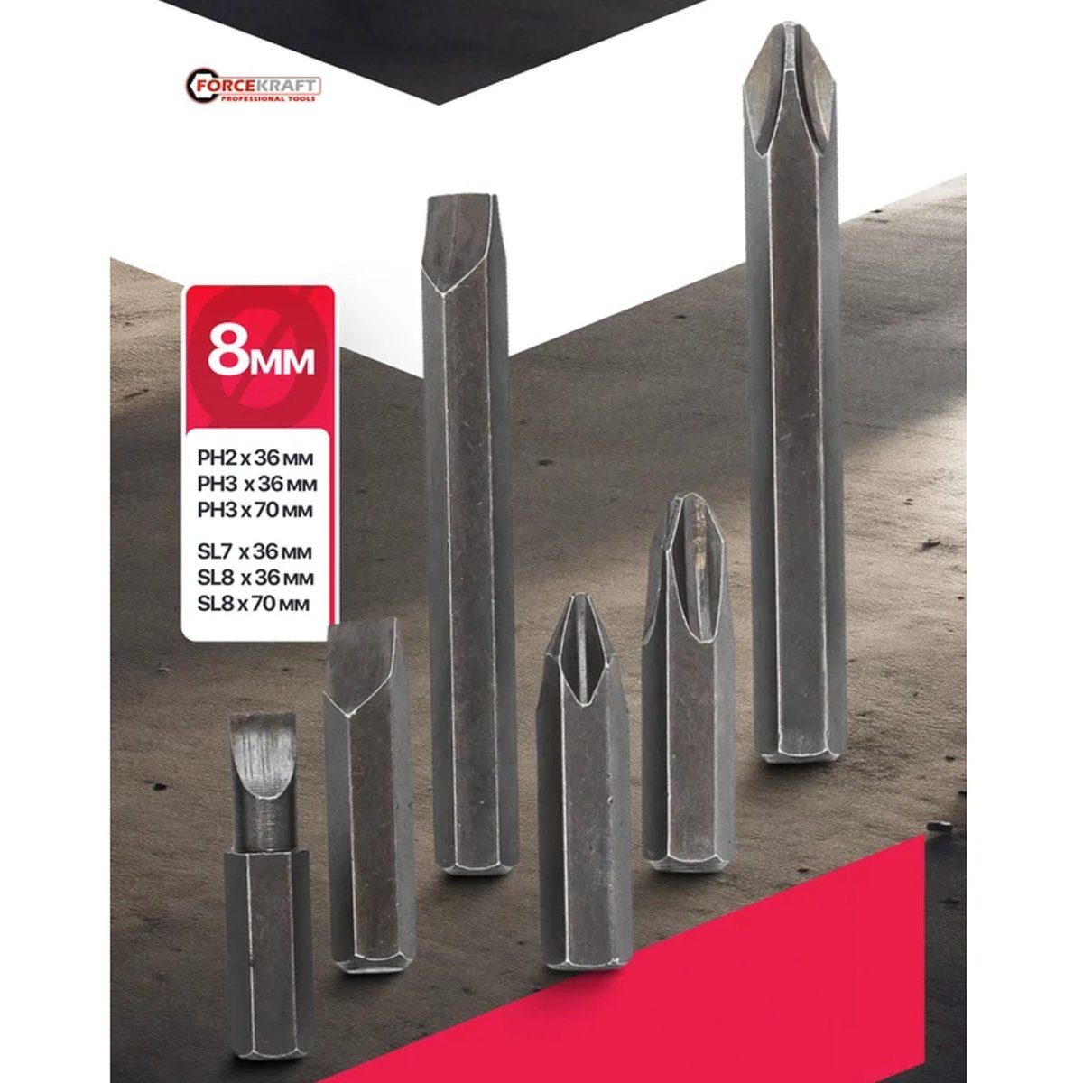 FORCEKRAFT Wkrętak udarowy z zestawem końcówek i adapterem✅ 8 SZTUK✅ ADAPTER 1/2''(F) x 5/16''(F)✅ WYSOKIEJ JAKOŚCI MATERIAŁY