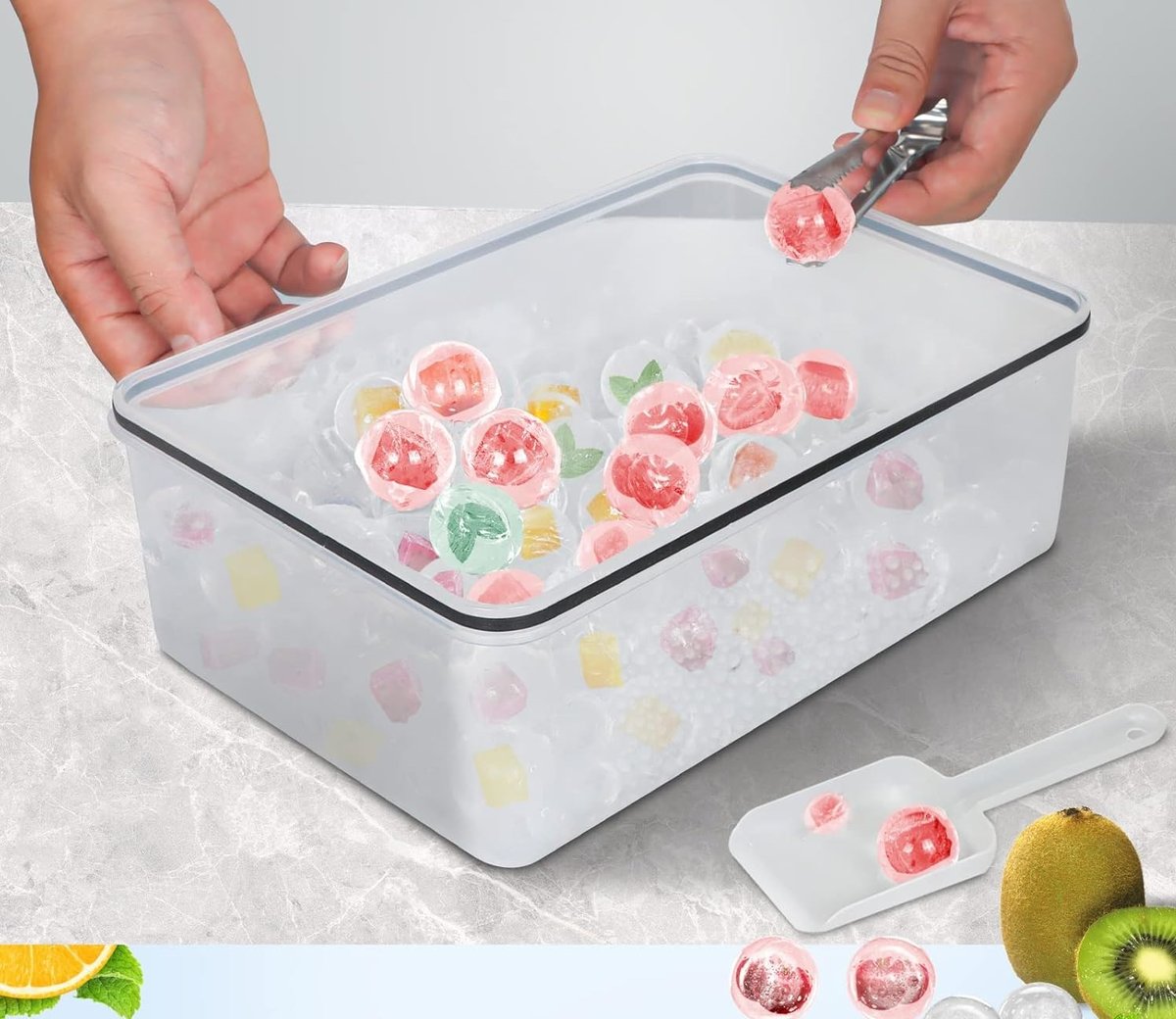 Wprowadź innowację do swojej kuchni dzięki foremce do lodu z pokrywką i pojemnikiem do przechowywania. Ten praktyczny zestaw obejmuje foremki do lodu w kształcie kuli, pojemnik, pokrywkę, szufelkę oraz szczypce. Foremki wykonane są z elastycznego i trwałego plastiku, co zapewnia łatwość użycia i długowieczność. Wystarczy wlać wodę do podstawy foremki, założyć pokrywkę i umieścić w zamrażarce. Gdy lód będzie gotowy, otwórz pokrywkę i delikatnie przekręć foremkę, aby natychmiast wydobyć idealnie zaokrąglone kostki lodu.