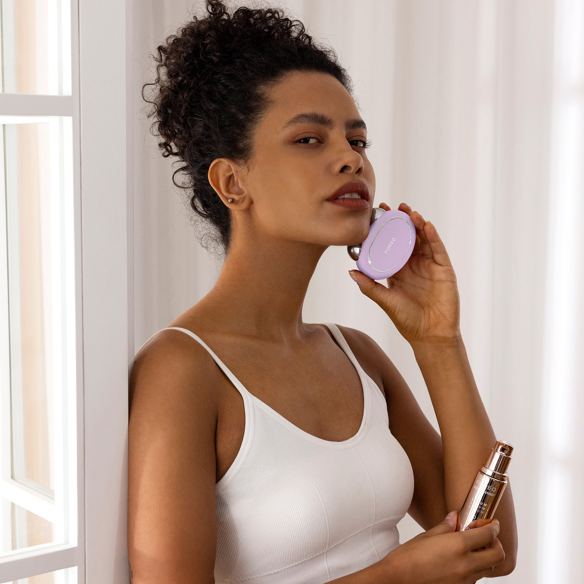 - Nałóż cienką warstwę serum na bazie wody FOREO dla bezpiecznego i skutecznego zabiegu.