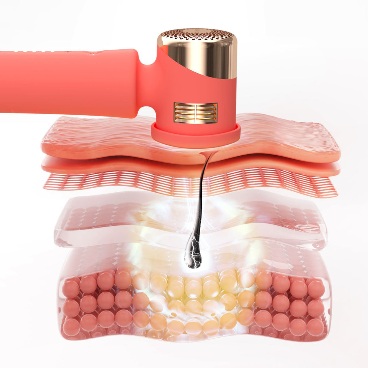 PEACH™ 2 zawiera również technologię inteligentnego wyczuwania skóry oraz przyjemny wbudowany system chłodzenia skóry z kanałami powietrznymi wzdłuż obręczy, które umożliwiają ciągły powiew chłodnego powietrza podczas zabiegów, zapewniając bezpieczne i bezbolesne zabiegów.