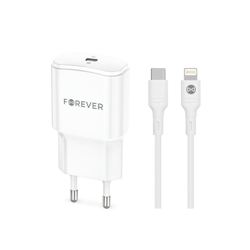 Forever ładowarka sieciowa PD QC TC-01-20C 1x USB-C 20W biała + kabel USB-C - Lightning 20W
