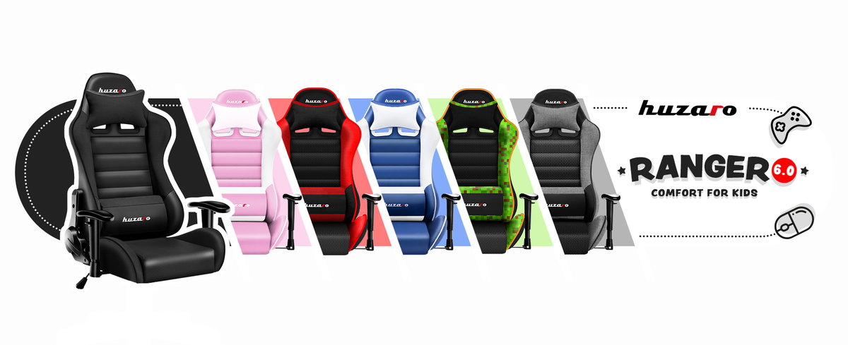 HUZARO RANGER to linia foteli gamingowych skierowanych do najmłodszych fanów gier komputerowych. Idealny do nauki i zabawy, model Ranger 6.0 ma w sobie wszystkie zalety naszego kultowego fotela Force 6.0, ale jego rozmiar został odpowiednio zmniejszony, aby zapewnić pełen komfort najmłodszym.