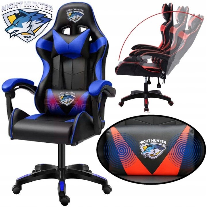 Fotel Gamingowy Kubełkowy dla Gracza Obrotowy z funkcją masażu pleców.KOLOR NIEBIESKIFotel gamingowy jest niezastąpiony dla osób poszukujących funkcjonalnego i nowoczesnego fotela zapewniającego ...