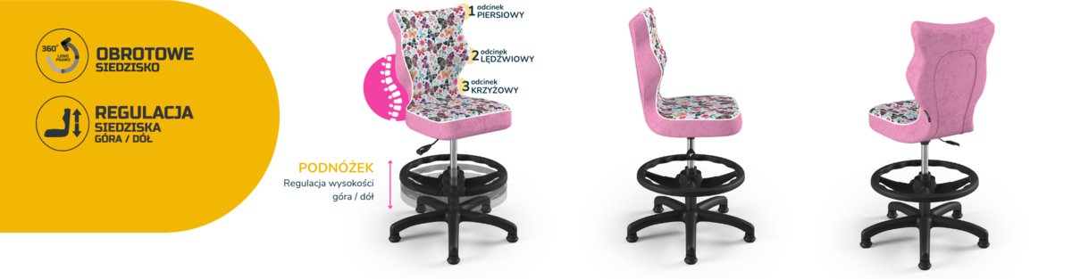 | Nazwa: | Entelo, Krzesło do biurka dla dziewczynki dopasowane do wzrostu 119-142 cm, model Petit z podnóżkiem motyw motylki obrotowe |
