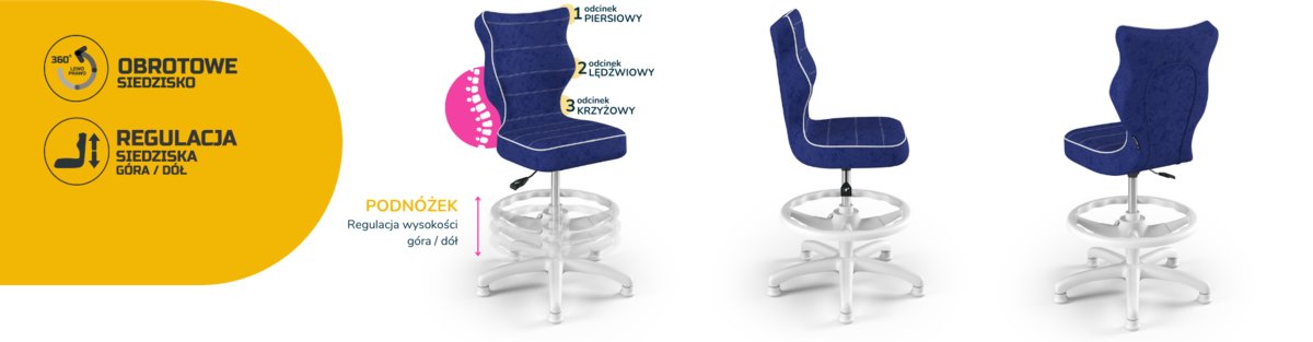 | Nazwa: | Entelo, Krzesło do biurka dla dziecka dopasowane do wzrostu 119-142 cm, model Petit z podnóżkiem kolor niebieski obrotowe |