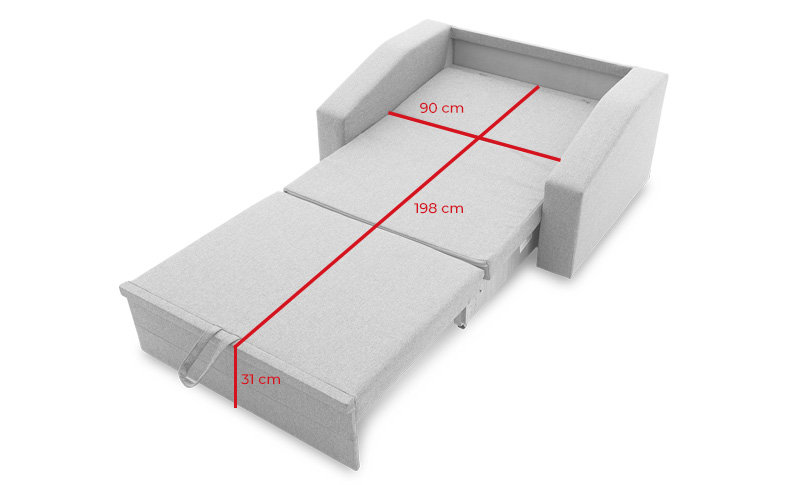 Rozkładany Fotel VERTICO wyposażony jest w wysuwany wózek. Po rozłożeniu daje powierzchnię do spania wynoszącą 198x90 cm. Wewnątrz fotela znajduje się jeden pojemnik do przechowywania pościeli. VERTICO to idealne rozwiązanie do małych pomieszczeń, ponieważ pozwala na oszczędność przestrzeni.