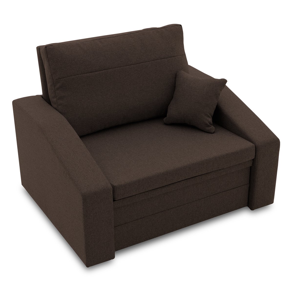 VERTICO to mały fotel rozkładany o szerokości siedziska 80 cm. Siedzisko wykonane jest z wytrzymałej i wygodnej pianki, natomiast oparcie wykończone jest dopasowaną dużą poduszką oparciową. Estetycznym detalem są lekko zaokrąglone podłokietniki.