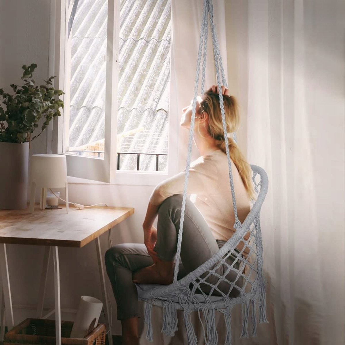 Dzięki solidnym sznurom komfortowo zawiesisz fotel mając pewność że sznur utrzyma fotel wraz z osobami wypoczywającymi