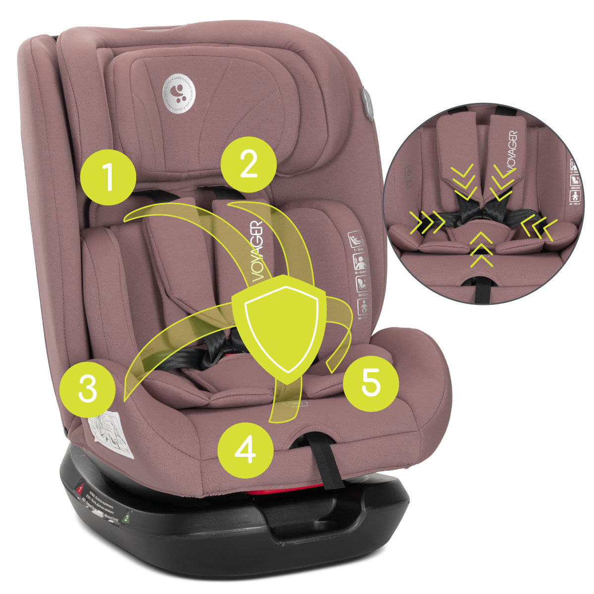 ❇️ Voyager można szybko i pewnie zamontować za pomocą standardowego trzypunktowego pasa samochodowego, bez konieczności instalacji Isofix. Rozwiązanie idealne do każdego auta i sytuacji.Łatwy montaż pasem samochodowym