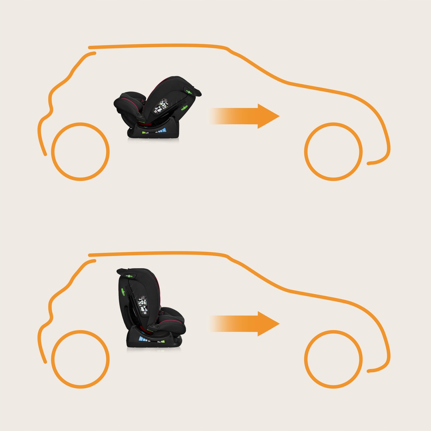 Ze względu na szeroki zakres wzrostowy fotelik umożliwia montaż zarówno przodem, jak i tyłem do kierunku jazdy.
