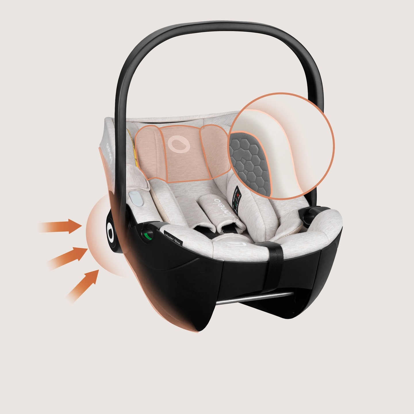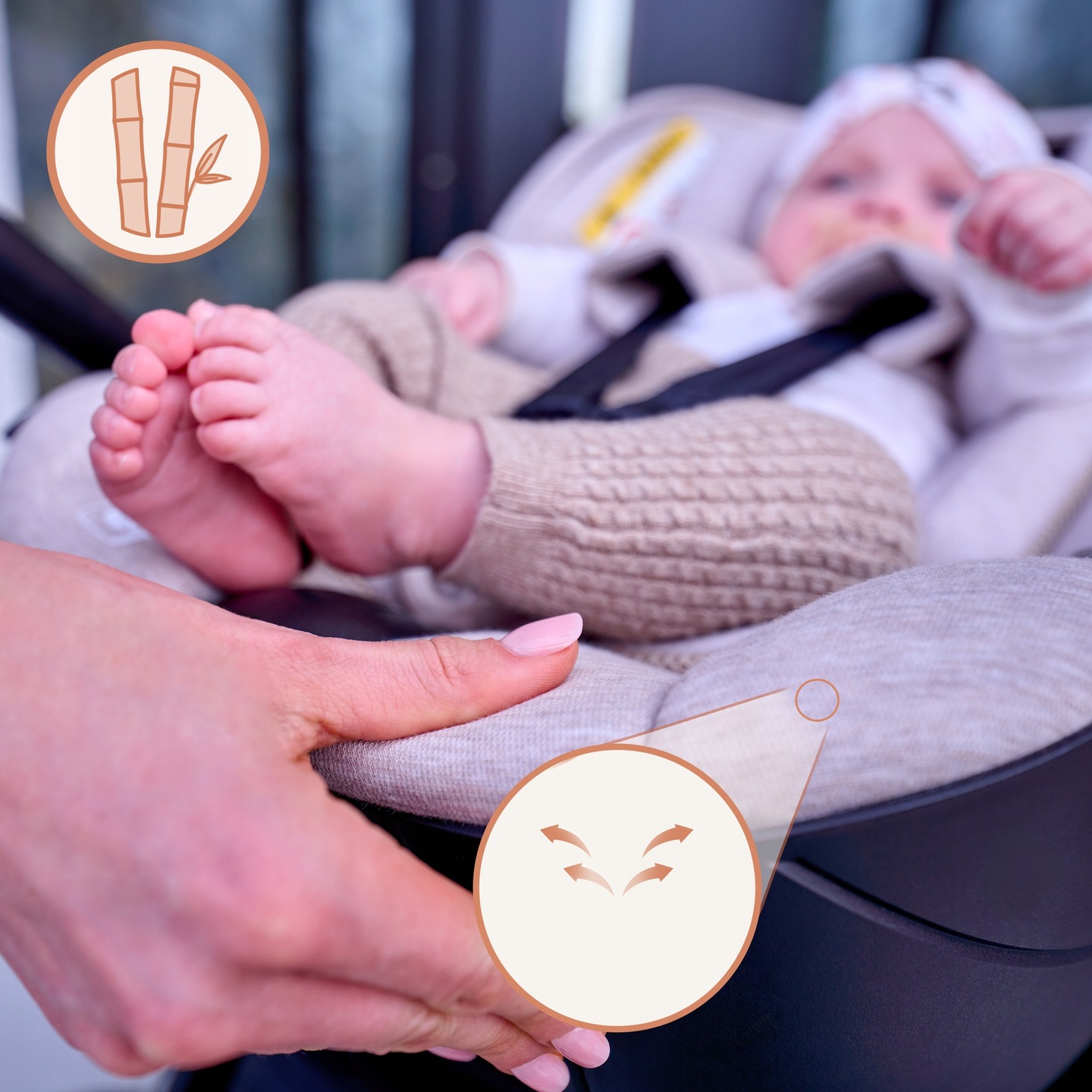 Wkładka redukcyjna w przeciwpotnym systemie DriSeat z wkładką lędźwiową zapewniają wygodną i optymalną pozycję noworodkom! Wypełniają i odpowiednio wypłaszczają przestrzeń w foteliku.