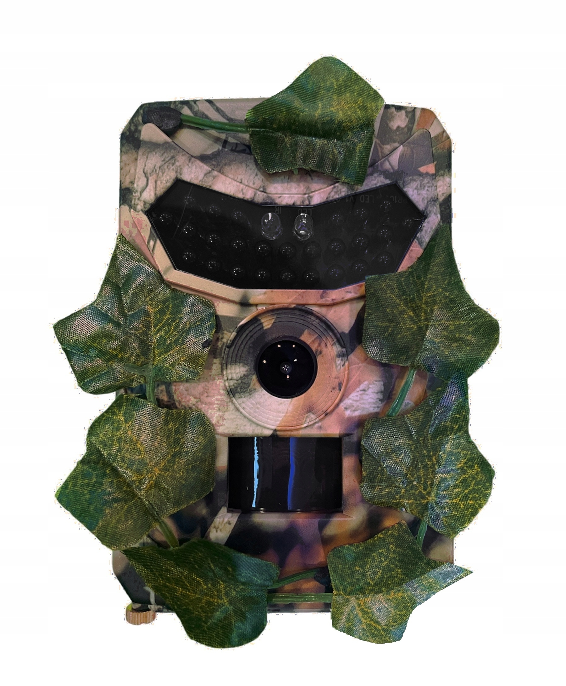 Dzięki liściom, które są na obudowie fotopułapki kamerka doskonale wtapia się w otoczenie. Przy montażu fotopułapki należy zwrócić uwagę aby liście nie zasłaniały obiektywu i czujników ruchu. Do obudowy kamerki można także przyczepić liście naturalne. Należy jednak pamiętać, że z powodu braku wody owe liście wyschną i opadną.