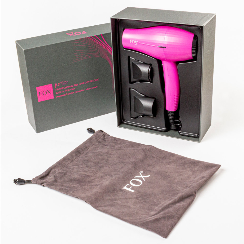 Fox Junior to profesjonalna, kompaktowa suszarka do włosów z jonizacją.