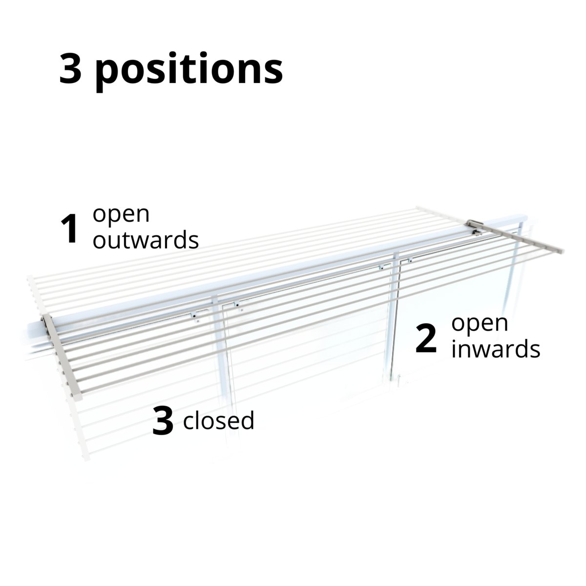 Może utrzymać do 15 kg ciężaru rozłożonego na 8 prętach, umożliwiając suszenie dużej ilości prania w tym samym czasie