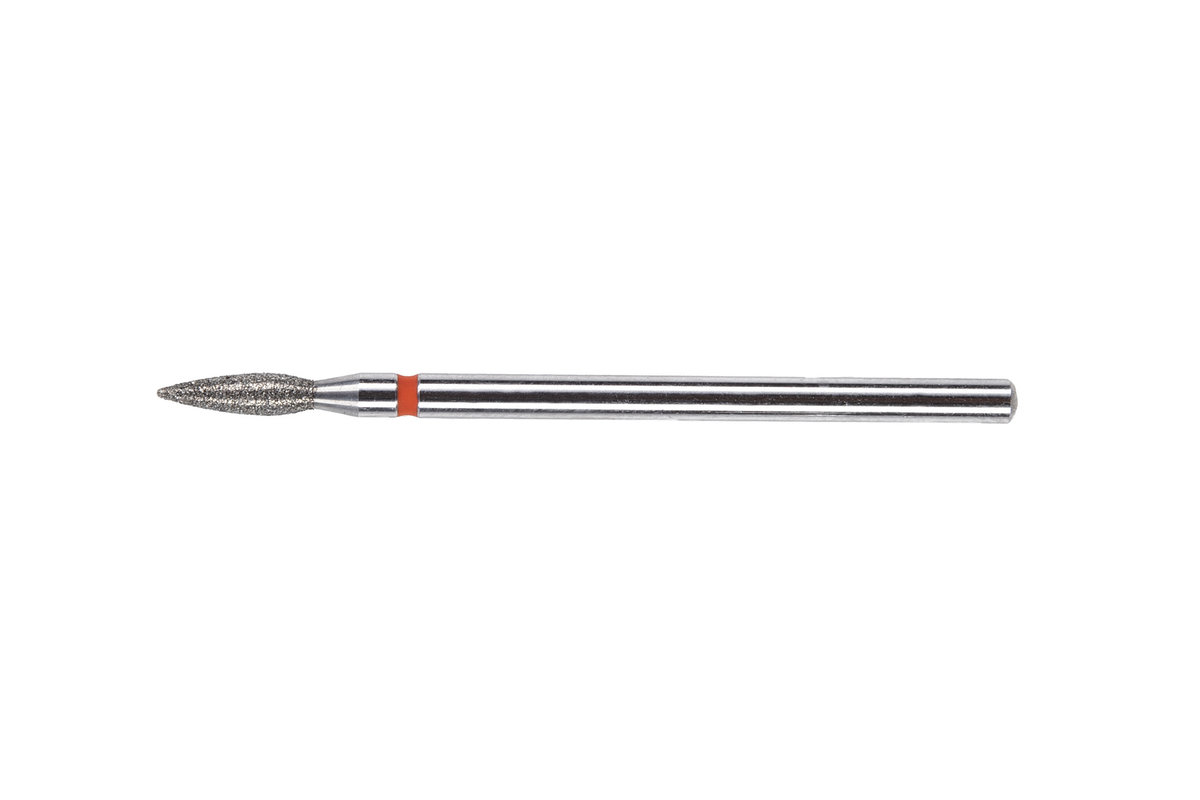 Frez diamentowy PODOMEDICAL P/C-06 (długość główki 8 mm, średnica 2,3 мм) to najpopularniejszа i najbardziej funkcjonalnа uniwersalnа nasadka, zarówno podczas zabiegów manicure, jak i pedicure. Ma kształt zaostrzonej łezki i posiada standardowy nasyp diamentowy, oznaczony kolorem czerwonym.