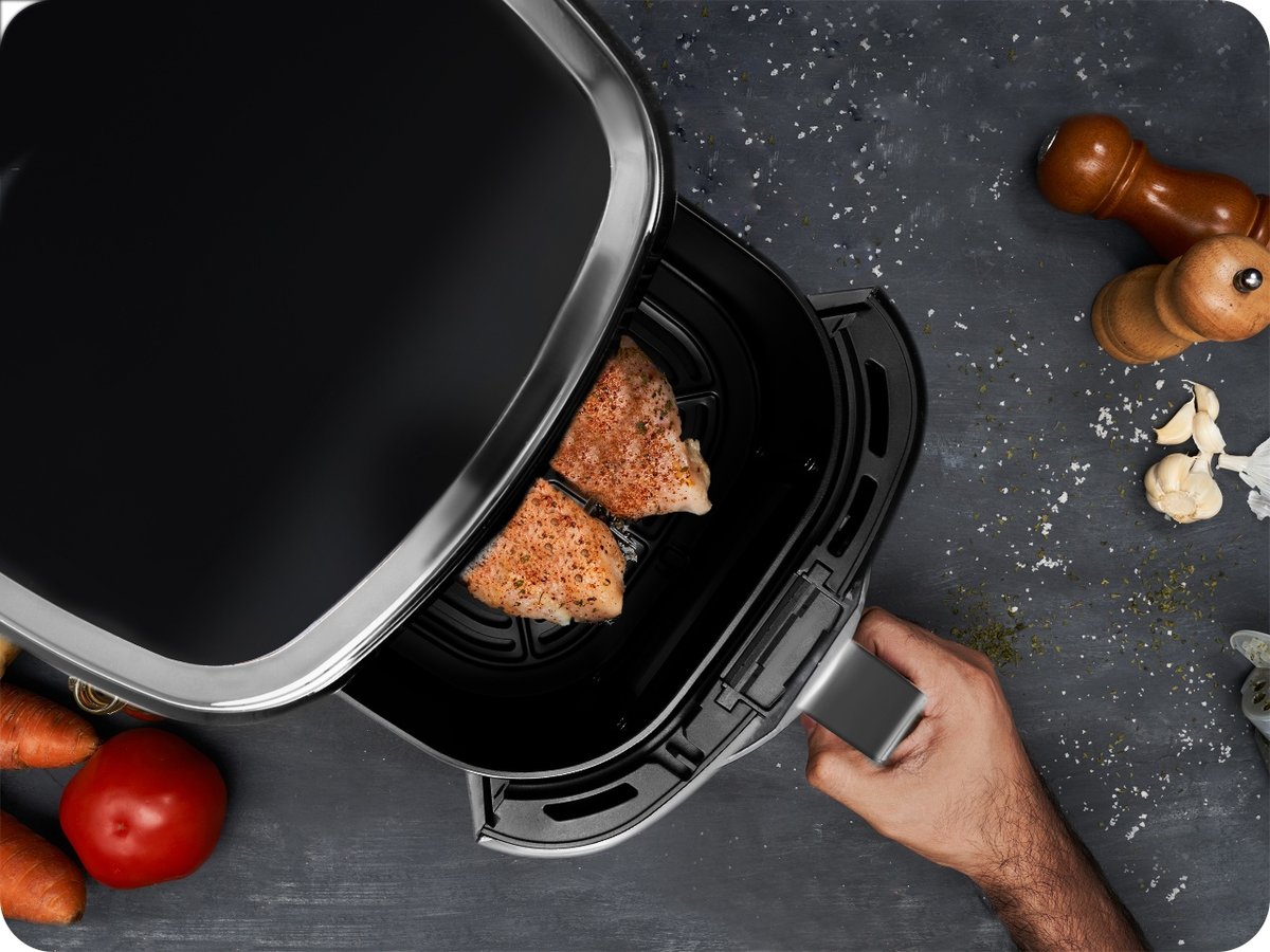 Na panelu urządzenia wyświetla się grafika informująca o czasach pieczenia, aby dodatkowo ułatwić korzystanie z frytkownicy.