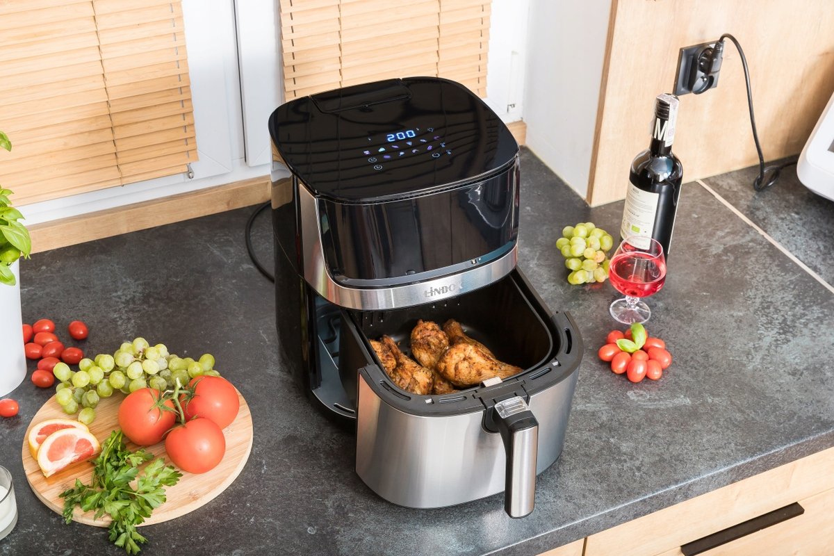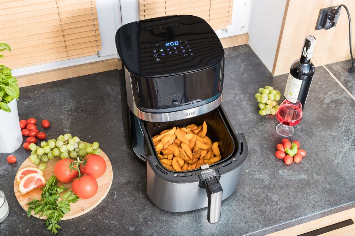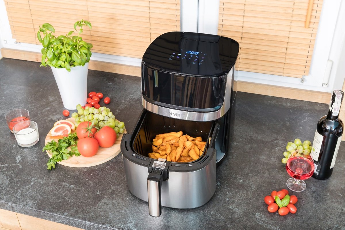 FRYTKOWNICA BEZTŁUSZCZOWA Z FUNKCJĄ PARY, 8L, 2000W, OKIENKO, PODWÓJNE GRZANIE