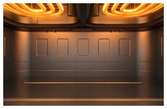 Metalowe wnętrze urządzenia eliminuje ryzyko pojawienia się zapachów tworzywa sztucznego podczas pracy. Powłoka zapobiegająca przywieraniu, zarówno wewnątrz kosza, jak i na grillowych płytach, znacząco ułatwia czyszczenie. Duże okno z podświetleniem umożliwia wygodne kontrolowanie procesu pieczenia, a funkcja automatycznego zatrzymania pracy po otwarciu kosza pozwala wygodnie dodawać przyprawy i mieszać potrawy, bez konieczności resetowania ustawień.