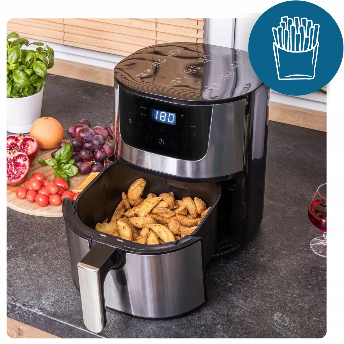 ☑️ To nowoczesne urządzenie to mały piekarnik beztłuszczowy. Prosta obsługa, funkcja opóźnienia i kompaktowe wymiary sprawiają, że frytkownica jest wygodnym i praktycznym dodatkiem do każdej kuchni.