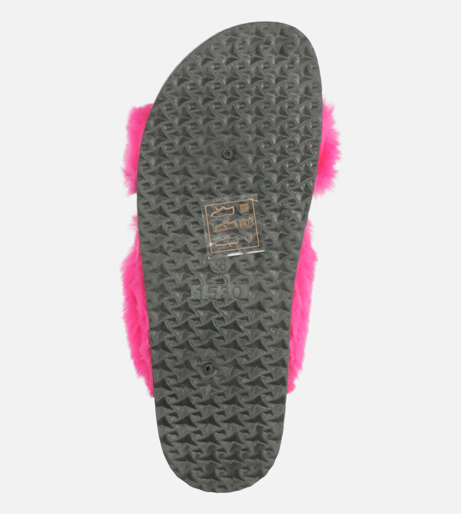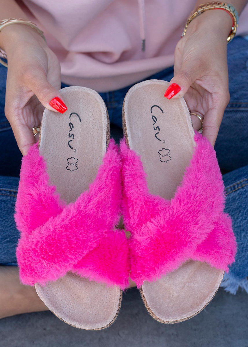 Fuksjowe klapki z futerkiem ze skórzaną wkładką i profilowaną korkową podeszwą Casu H20X2/F
