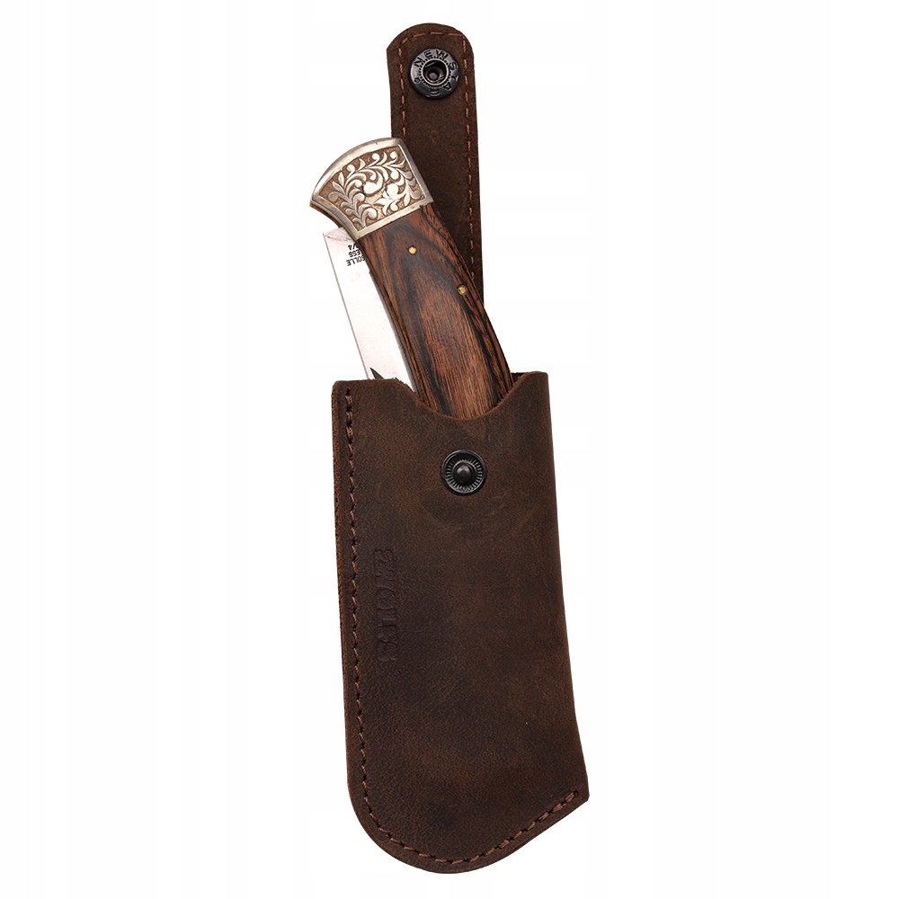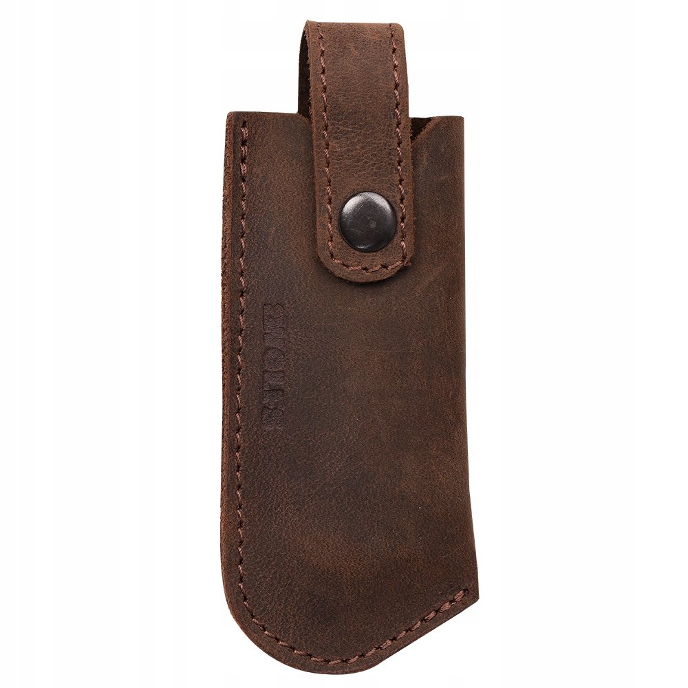 Mocowany do paska skórzany futerał dedykowany do noży składanych. Posiada zapięcie zapobiegające przypadkowemu wypadnięciu noża.