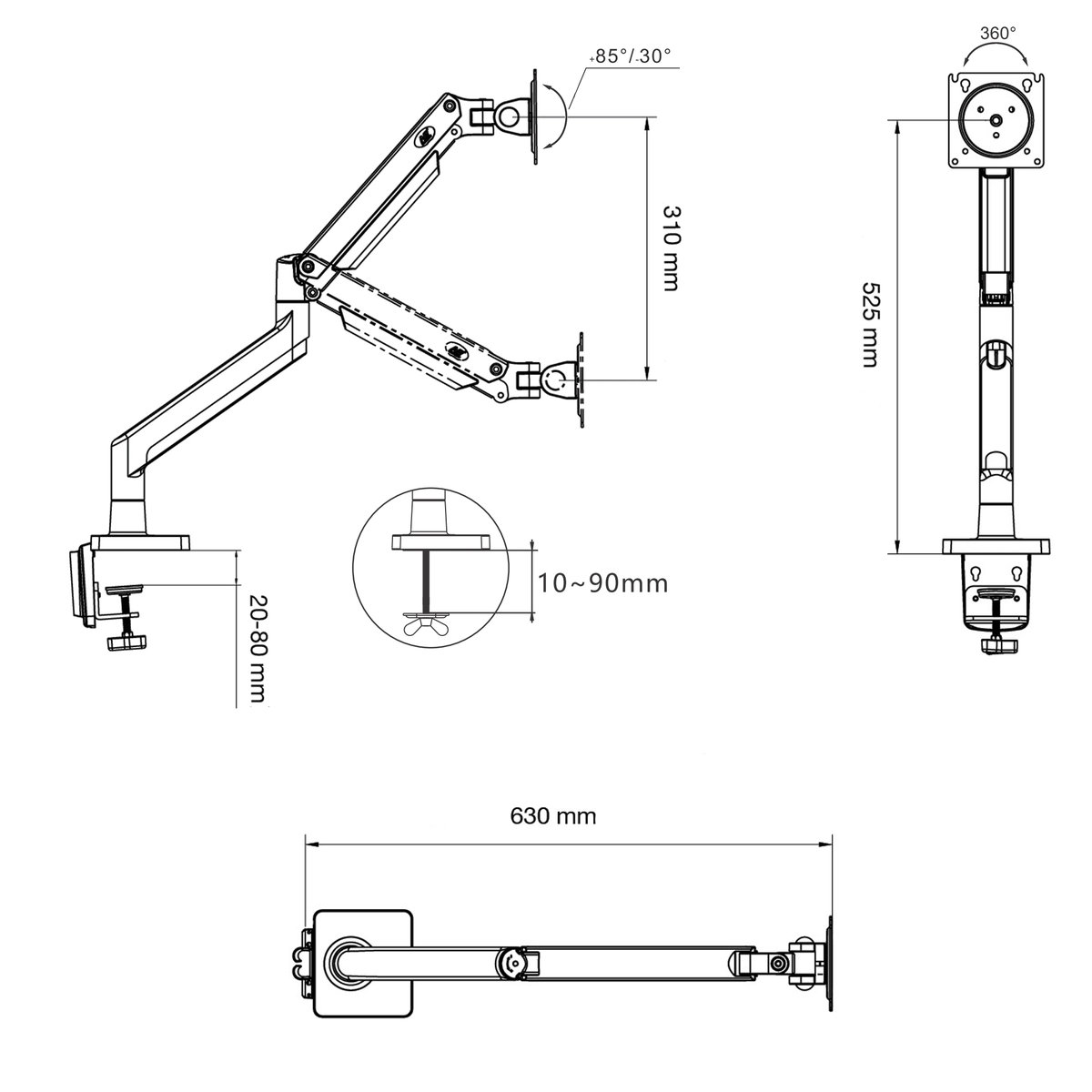 - uchwyt posiada precyzyjną sprężynę gazową pozwalającą na płynną regulację wysokości monitora