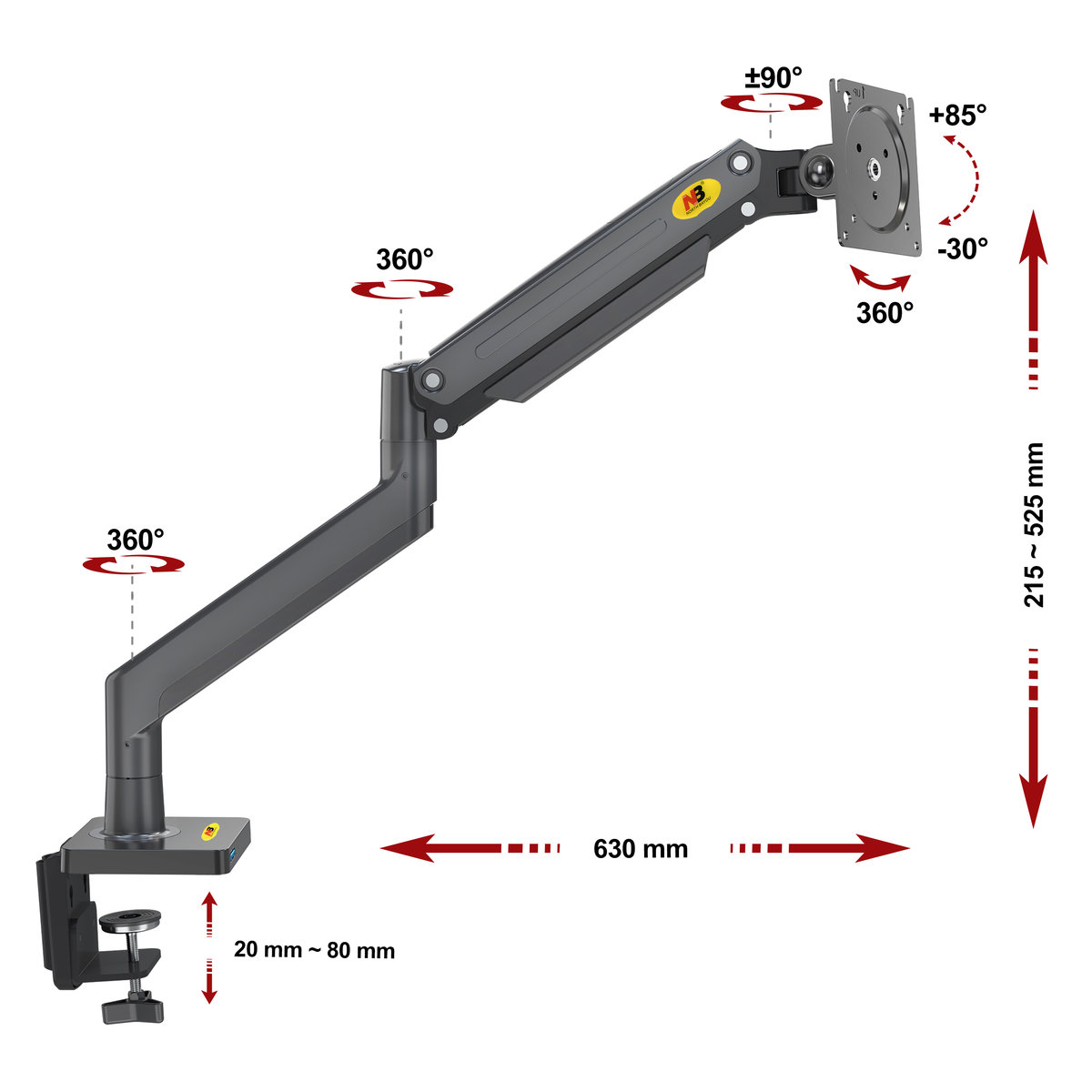 Solidny biurkowy uchwyt ze sprężyną gazową do monitorów LCD LED 22″ – 40″ Model: NB G45 Grafitowy CHARAKTERYSTYKA pełna regulacja 3D przeznaczony do monitorów i telewizorów o przekątnej 22″-40″ ...